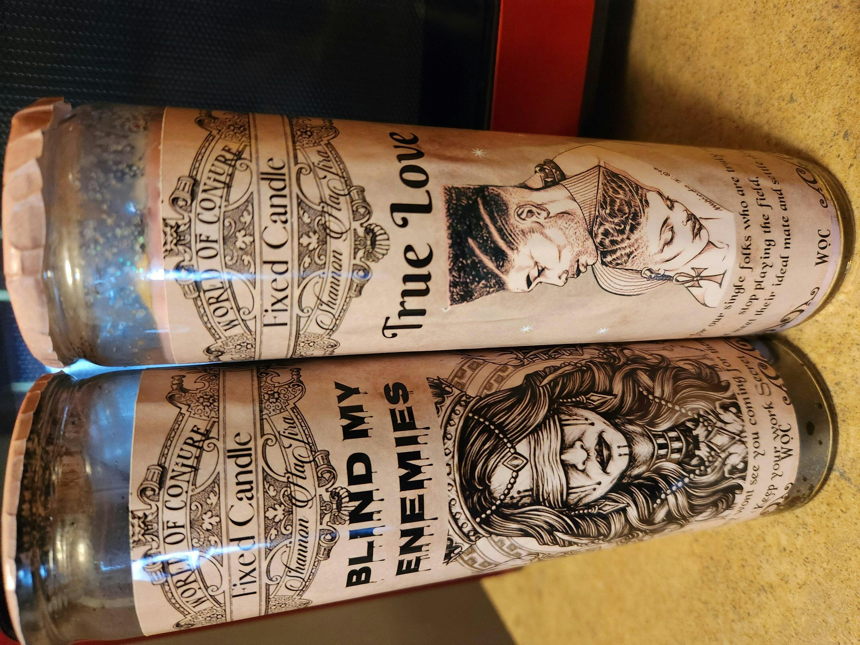 Sometimes you gotta work in the dark so your enemies stay confused. This candle is fixed and dressed to shield your intentions, cloak your work, and keep those who wish you harm completely in the dark. Whether it’s a jealous co-worker, a two-faced friend, or a nosey ex who stays watching your every move—this candle makes sure they won’t see nothin’ coming.